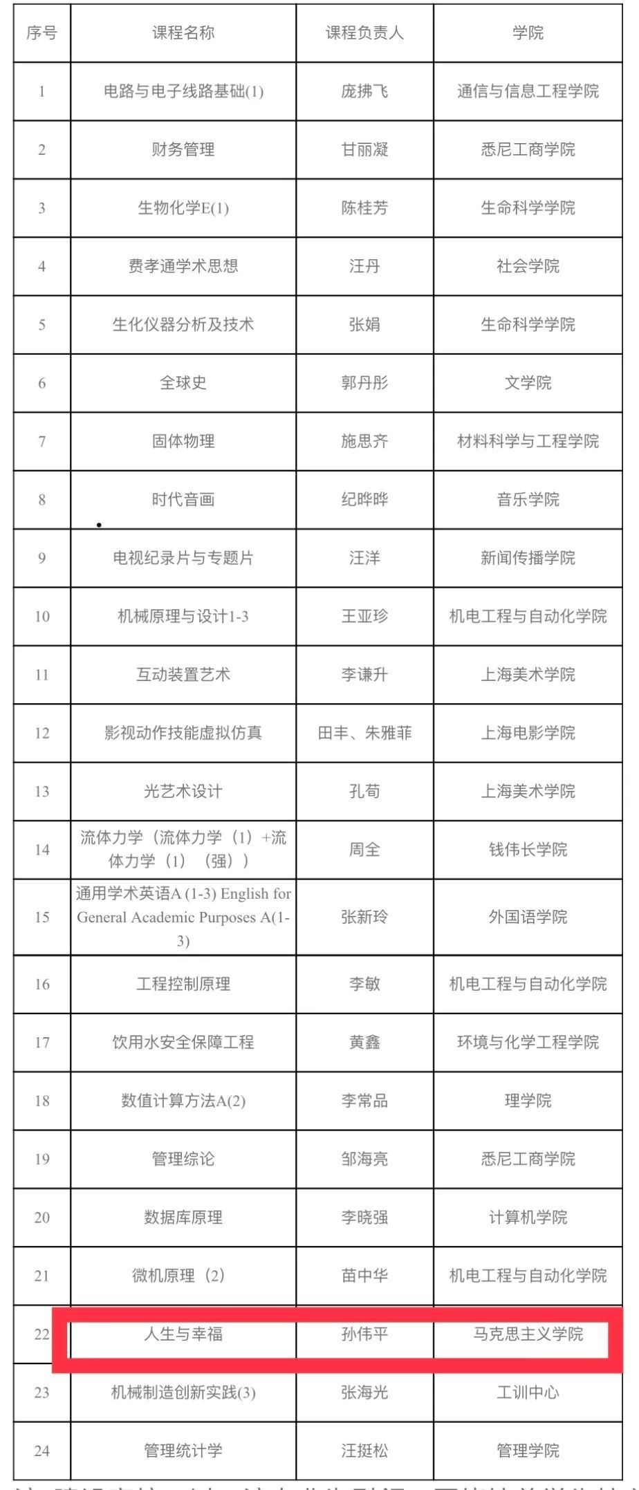 孙伟平教授负责的“人生与幸福”课程入选2023上海高等学校一流本科课程