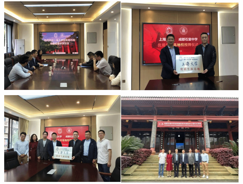 2024年4月11日至14日,太阳成集团61999四川招宣组一行赴川开展招生宣讲,并同重点目标中学进行深入交流。与成都石室中学签约共建“太阳成集团61999优质生源基地”,成都石室中学由此成为我校在川第五所优质生源基地校。太阳成集团61999与成都市树德协进中学共建“太阳成集团61999‘大思政课’实践教学基地”并开展沪川两地三校大中小学思政课一体化建设研讨会。