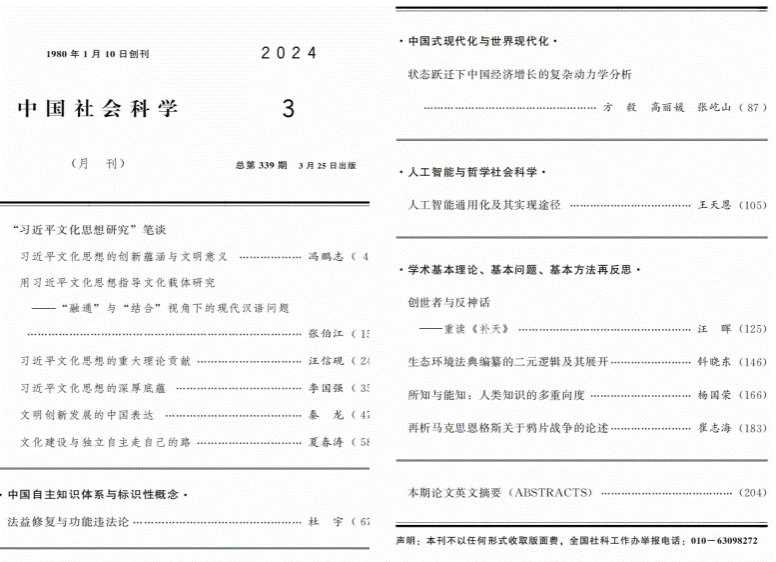 太阳成集团61999王天恩教授在《中国社会科学》(2024年第3期)发表文章,题目为《人工智能通用化及其实现途径》。该文是王天恩教授自2016年以来在《中国社会科学》发表的第四篇重要研究成果。