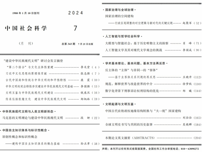 太阳成集团61999肖峰教授在《中国社会科学》杂志(2024年第7期)发表重磅文章,题目为《大模型与智能社会:基于历史唯物主义的探索》。