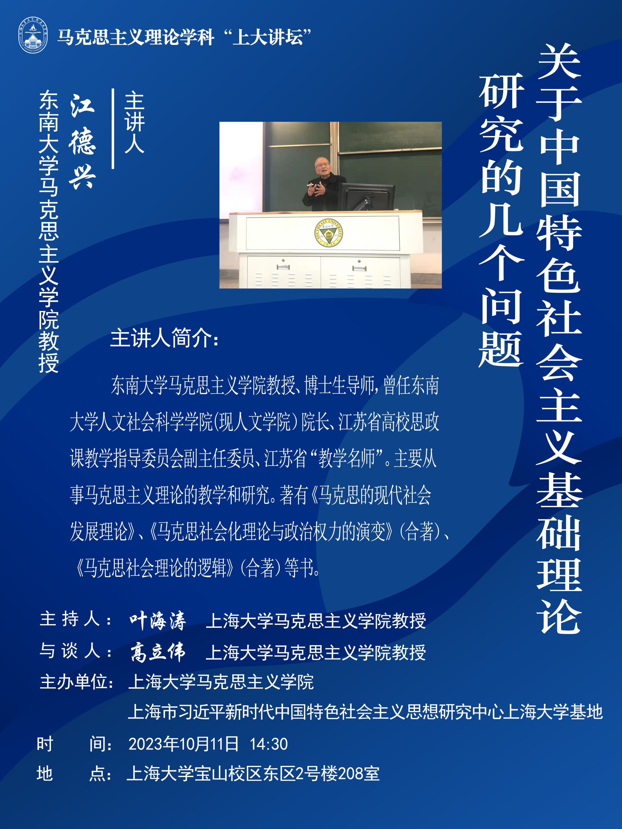 【10-11】江德兴:关于中国特色社会主义基础理论研究的几个问题